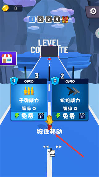 1、跟隨提示【按住移動】操控角色,選擇升級項,提升戰(zhàn)斗能力。