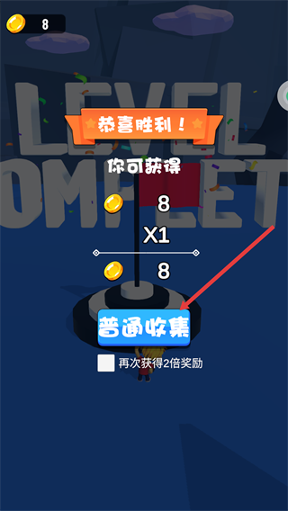 4、點擊【普通收集】領(lǐng)取【8】金幣與【X1】道具,或看廣告獲取2倍獎勵積累資源。